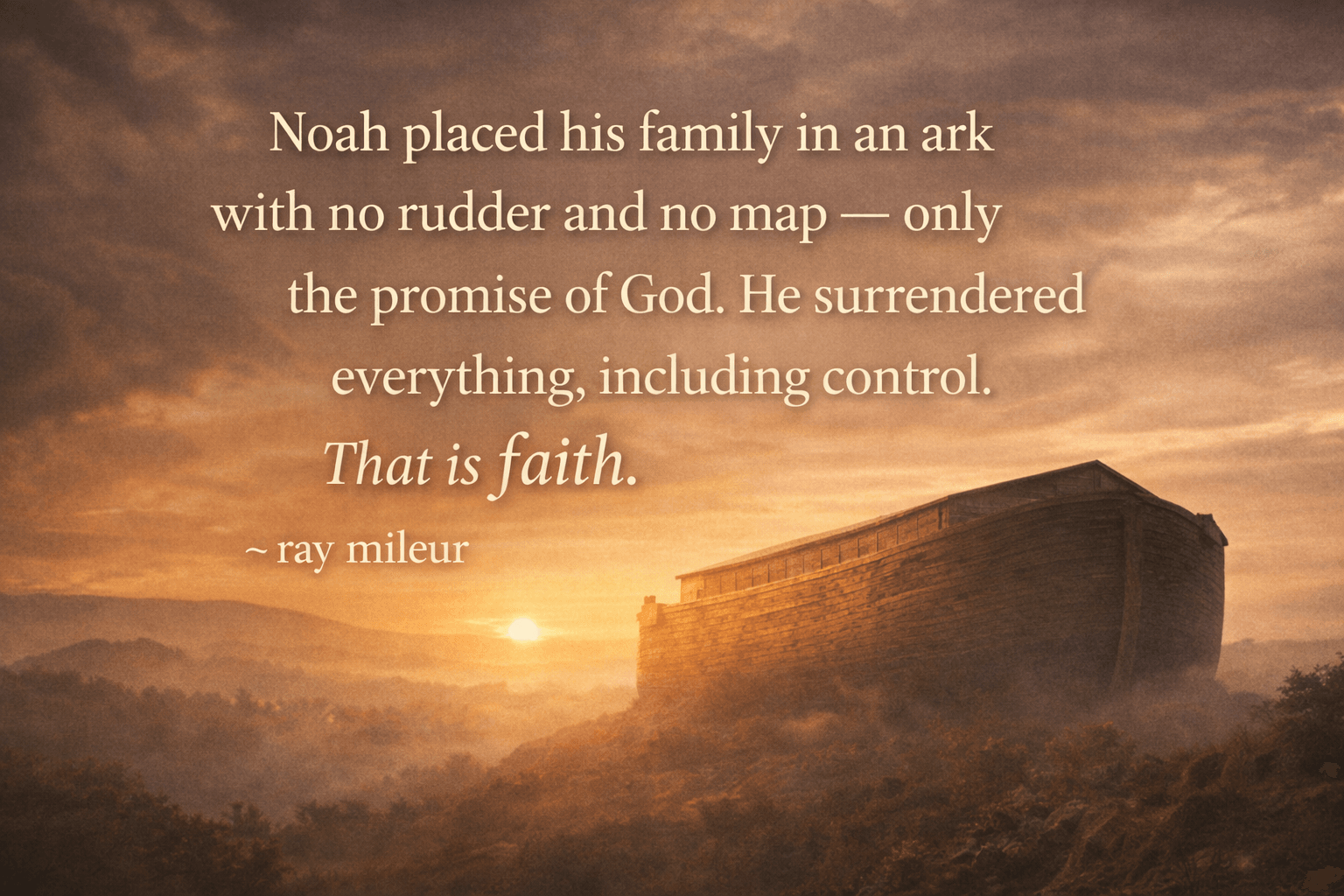 This quote reminds us that biblical faith is not about having all the answers or controlling the outcome — it’s about trusting God when the path makes no sense. Noah stepped into an ark with no rudder, no map, and no backup plan — only the promise of God. In the same way, God is not asking anything more of us today than He asked of Noah: to trust His Word, surrender control, and step forward in faith. The same God who carried the ark will carry you too.