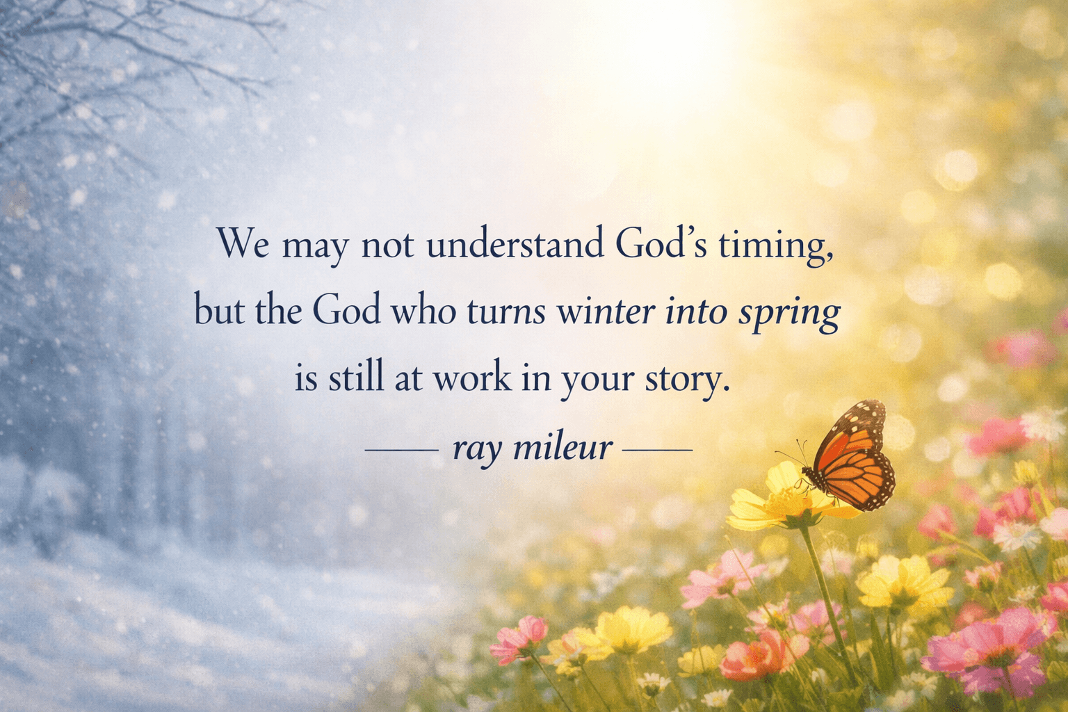 Sometimes the hardest part of faith isn’t believing that God can work — it’s trusting Him when we can’t see what He’s doing. Seasons of waiting, loss, or uncertainty can feel like winter that will never end. But just as surely as spring follows winter, God is quietly working beneath the surface of your life, preparing growth you can’t yet see. His timing is never random, never careless, and never late. Even when the days feel cold and silent, He is still writing your story with purpose, love, and redemption.